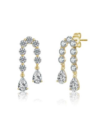 14K Gold Plated with Clear Cubic Zirconia Invented U-Shaped Drop Earrings