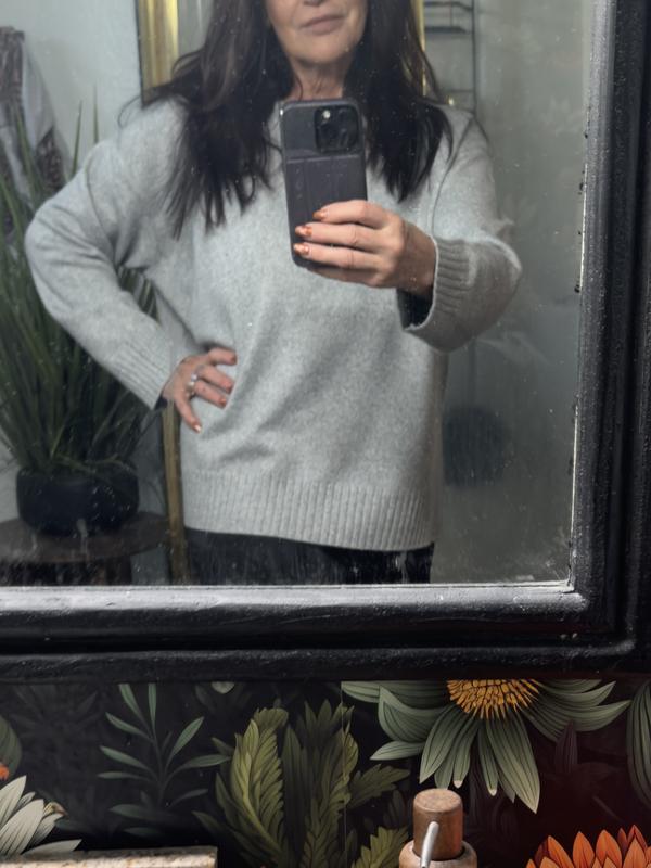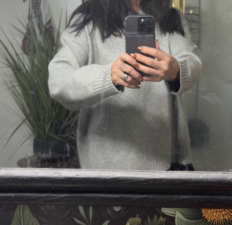 So I ordered this sweater a size bigger ,then I normally wear, Which is medium, I ordered a large because, I wanted it to be really roomy and oversized. With that being said, if you don’t want it oversize ,order your true size . The sweater is super soft, and very cozy. It’s a nice soft gray and the material feels great against your skin. Definitely would recommend this. It A basic sweater that could be dressed up or down with accessories, definitely would order it again
