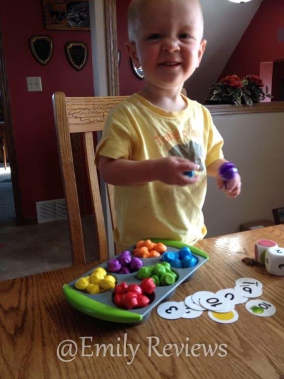 I received this product as part of an incentivized review program. This game was great. An easy way to work on counting and colors with my preschooler to make math fun.